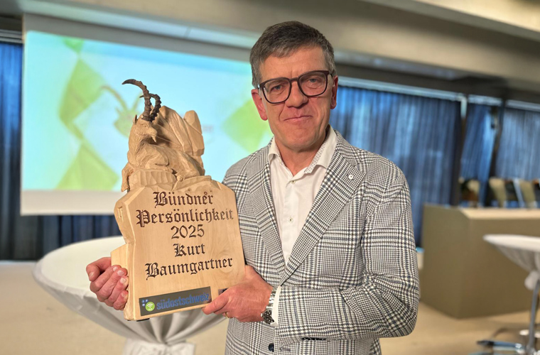 In January, the Südostschweiz media group called for an online vote to find the ‘Grisons Personality of 2025’. Among the nominees was Kurt Baumgartner, who was delighted to receive the award on 4 March 2026.