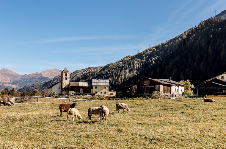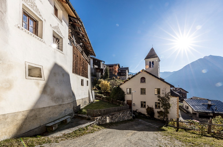 The post bus takes us to Ramosch, where we visit the second largest church in the canton of Graubünden. The journey continues to Vnà and Zuort, where we marvel at the wooden chapel designed by Wilhelm Mengelberg. In Sent, we visit the church with its neo-Gothic tower, which is visible from afar.